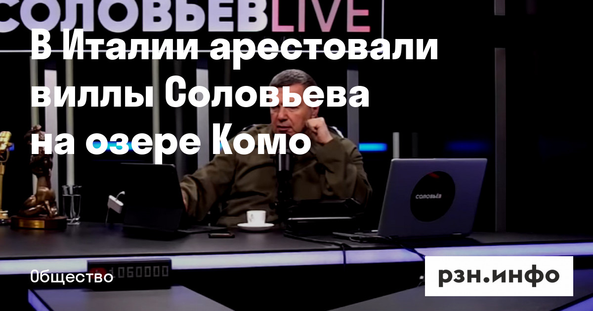 В Италии арестовали виллы Соловьева на озере Комо. Об этом в субботу, 5 марта, РБК со ссылкой на портал La Repubblica.