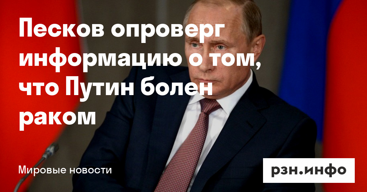 Пресс-секретарь президента Дмитрий Песков сообщил, что информация о раке щитовидной железы у Владимира Путина не соответствует действительности. Об этом в Telegram-канале сообщил экс-главред «Эха Москвы» Алексей Венедиктов.