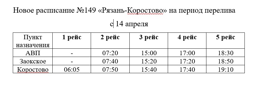 С 14 апреля изменится расписание автобуса № 149 «Рязань-Коростово»