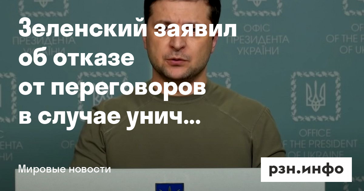 Зеленский заявил об отказе от переговоров в случае уничтожения украинских военных в Мариуполе