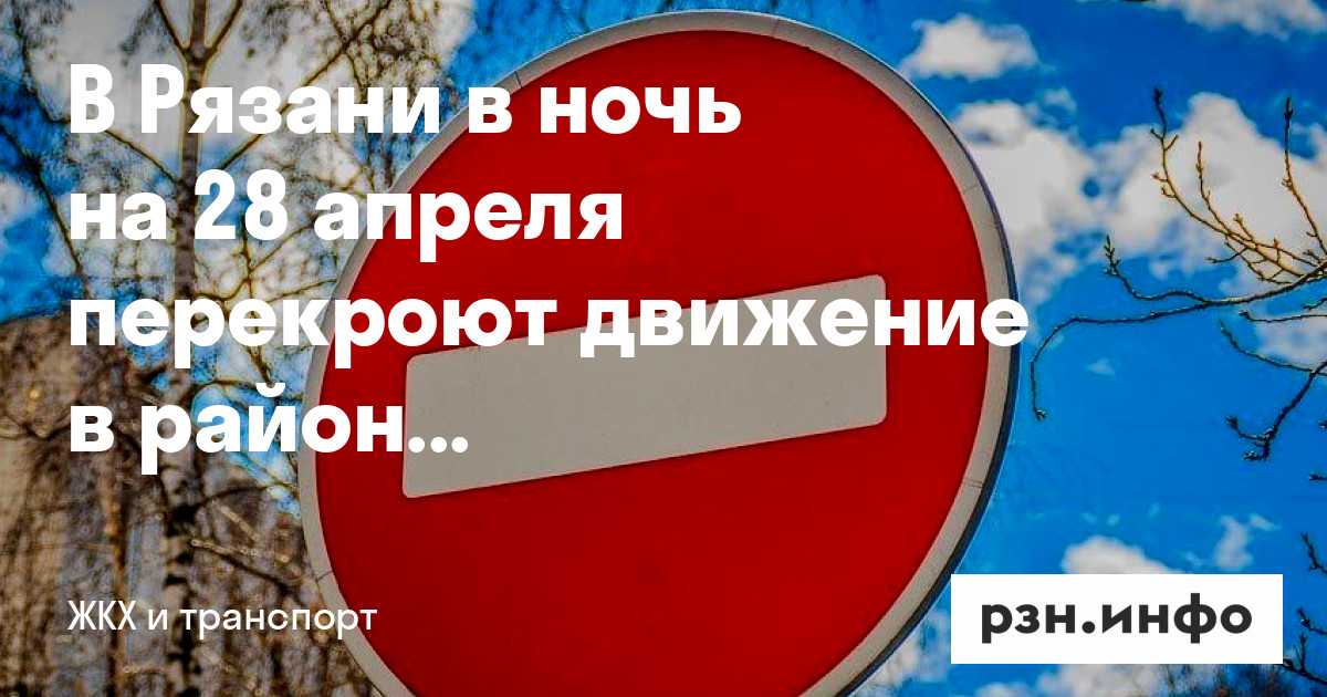 В Рязани в ночь на 28 апреля перекроют движение в районе остановок «Рязанская таможня»