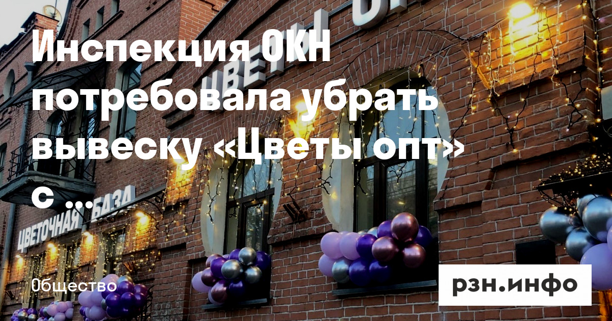 Инспекция ОКН потребовала убрать вывеску «Цветы опт» с дома адвоката Чистова на улице Ленина, № 27 в Рязани. Об этом сообщил руководитель региональной инспекции Михаил Дорофеев.