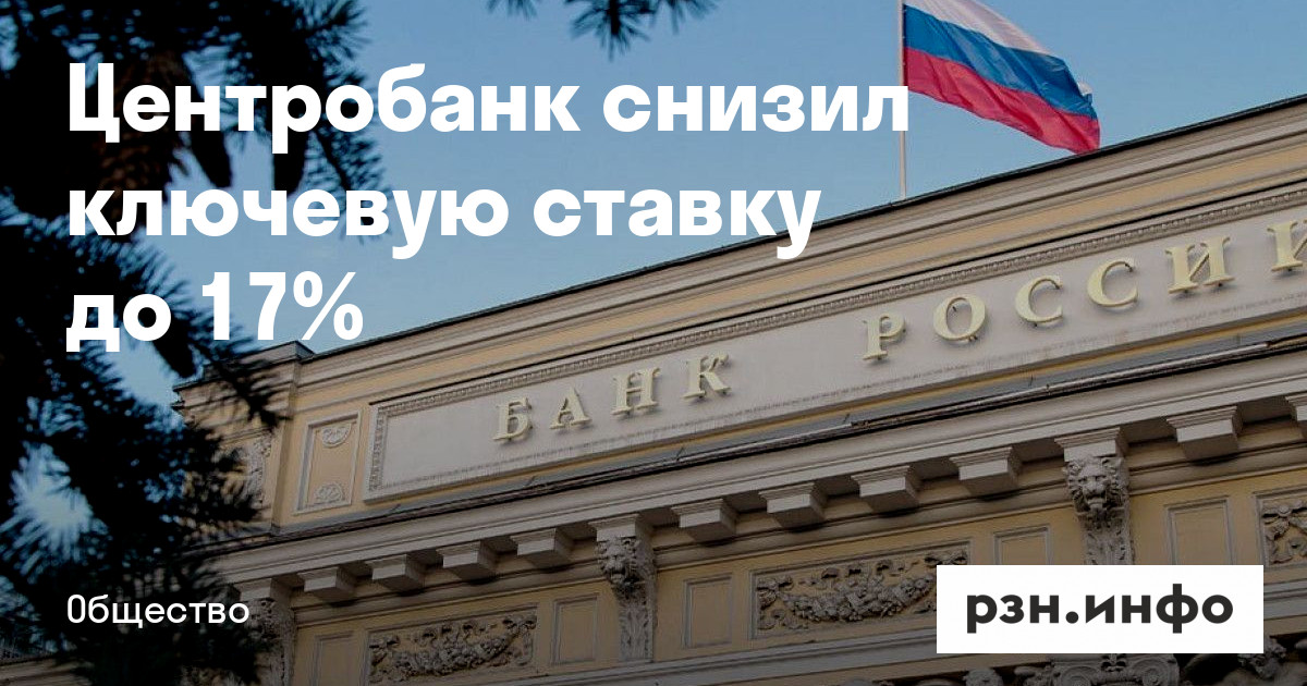 Центральный банк России снизил ключевую ставку до 17%. Об этом сообщается на регулятора.