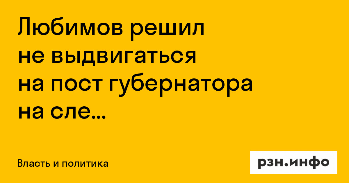 Любимов решил не выдвигаться на пост губернатора на следующий срок
