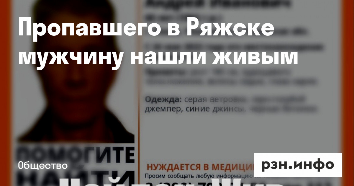 Андрея Чичкова, пропавшего в Ряжске, нашли живым. Об этом группа поисково-спасательного отряда «ЛизаАлерт» Рязанской области.