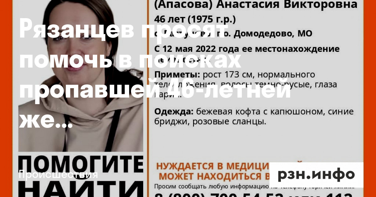 Рязанцев просят помочь в поисках пропавшей 46-летней женщины