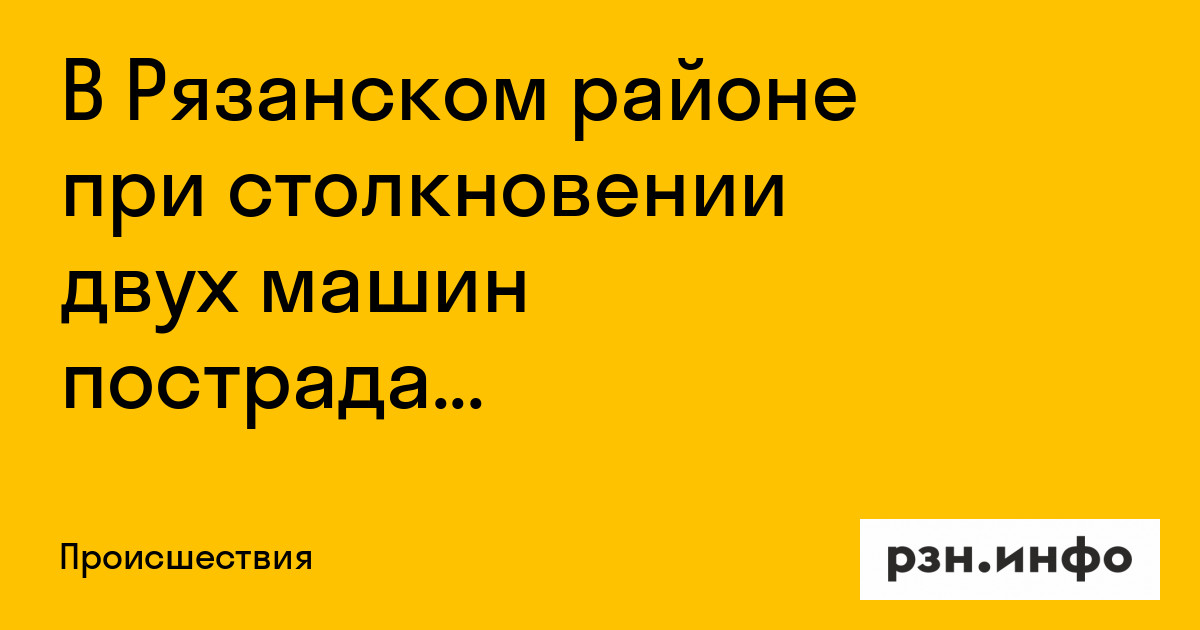 В Рязанском районе при столкновении двух автомобилей пострадала женщина. Об этом сообщило региональное УМВД.