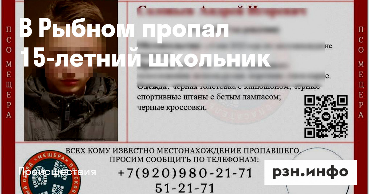 В Рыбном пропал 15-летний школьник