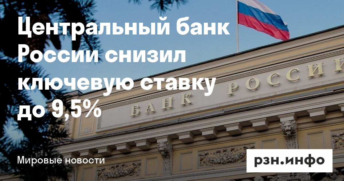 Центральный банк России снизил ключевую ставку до 9,5%. Информация появилась на сайте регулятора.