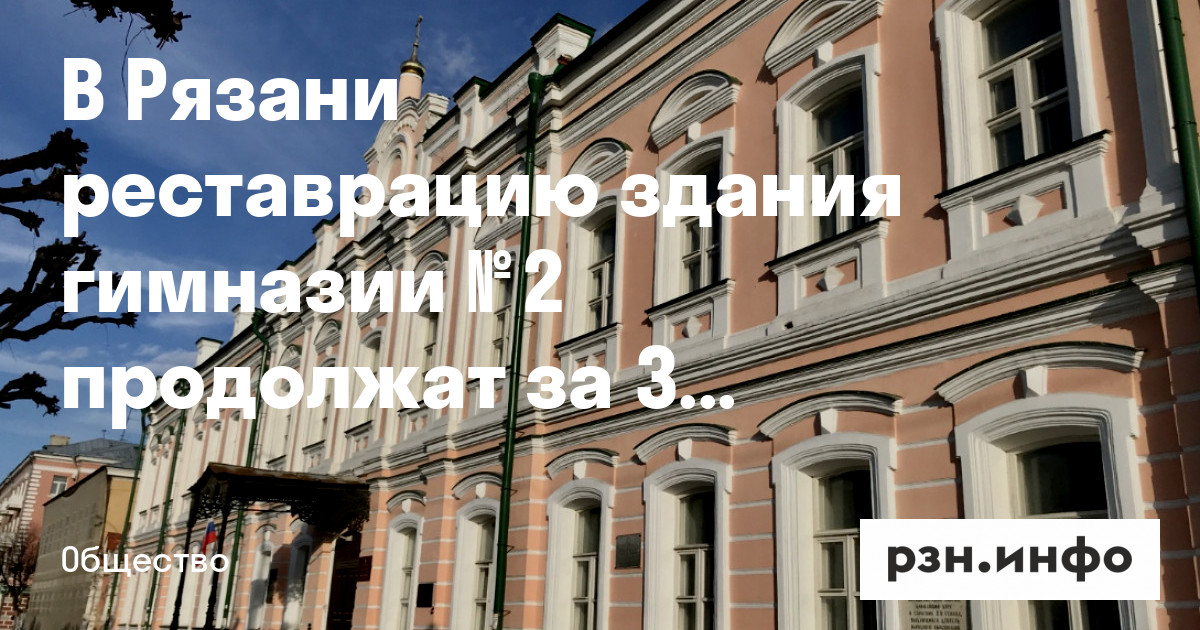 В Рязани реставрацию здания гимназии № 2 продолжат за 343,5 миллионов рублей