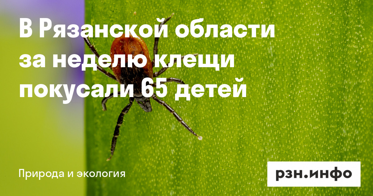 На прошлой неделе в больницы Рязанской области обратился 151 человек, в том числе 65 детей. Отмечается, что наиболее вероятными местами нападения клещей являются леса, дачные участки, кладбища.