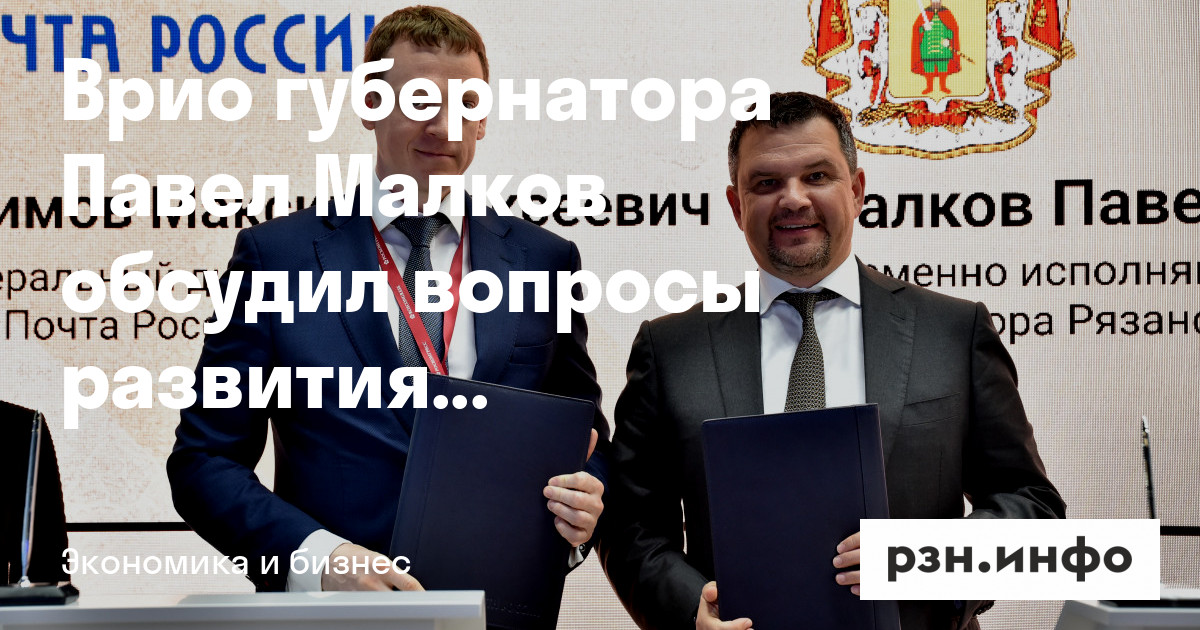 В среду, 15 июня, на Петербургском международном экономическом форуме состоялась рабочая встреча врио губернатора Рязанской области Павла Малкова и генерального директора АО «Почта России» Максима Акимова. В ходе встречи было подписано соглашение о взаимодействии.
