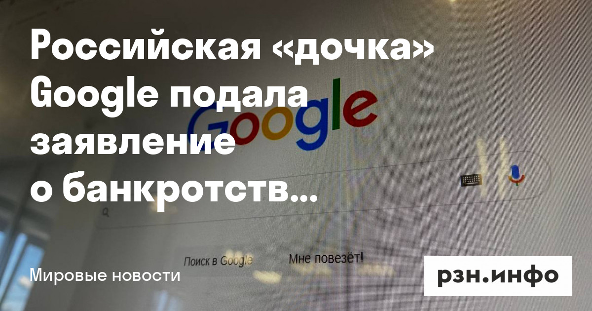 ООО «Гугл» еще в мае сообщила о намерении обратиться с заявлением о признании несостоятельности. Ранее «дочку» компании оштрафовали на 7,2 миллиарда рублей за повторное неудаление запрещенной информации. В конце февраля Таганский суд Москвы отклонил жалобу компании на это решение.