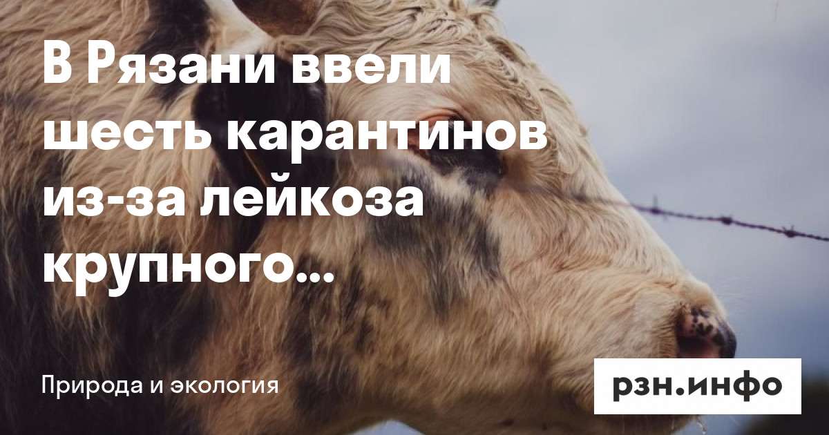 В Рязани ввели шесть карантинов из-за лейкоза крупного рогатого скота. Постановления главного управления ветеринарии Рязанской области официально опубликовали в четверг, 16 июня.