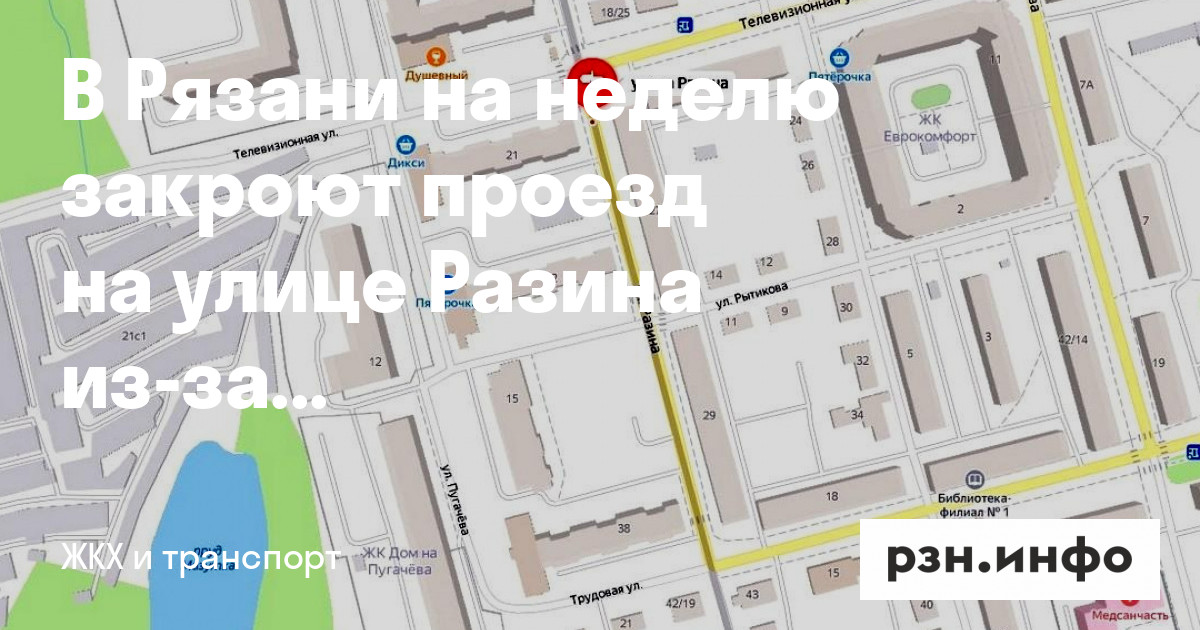 В Рязани на неделю закроют проезд на улице Разина из-за ремонтных работ