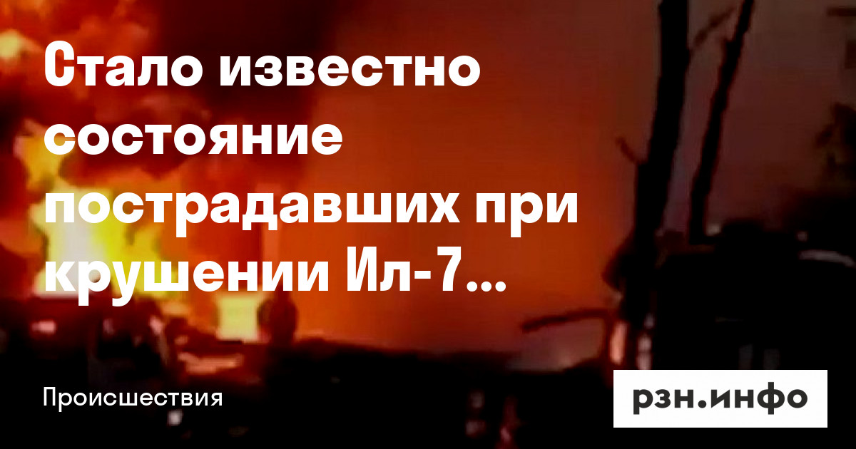 Стало известно состояние пострадавших при крушении Ил-76 в Рязани. Об этом в пятницу, 24 июня, РЕН ТВ.
