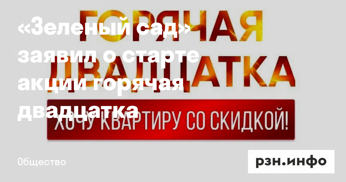 «Зеленый сад» заявил о старте акции горячая двадцатка