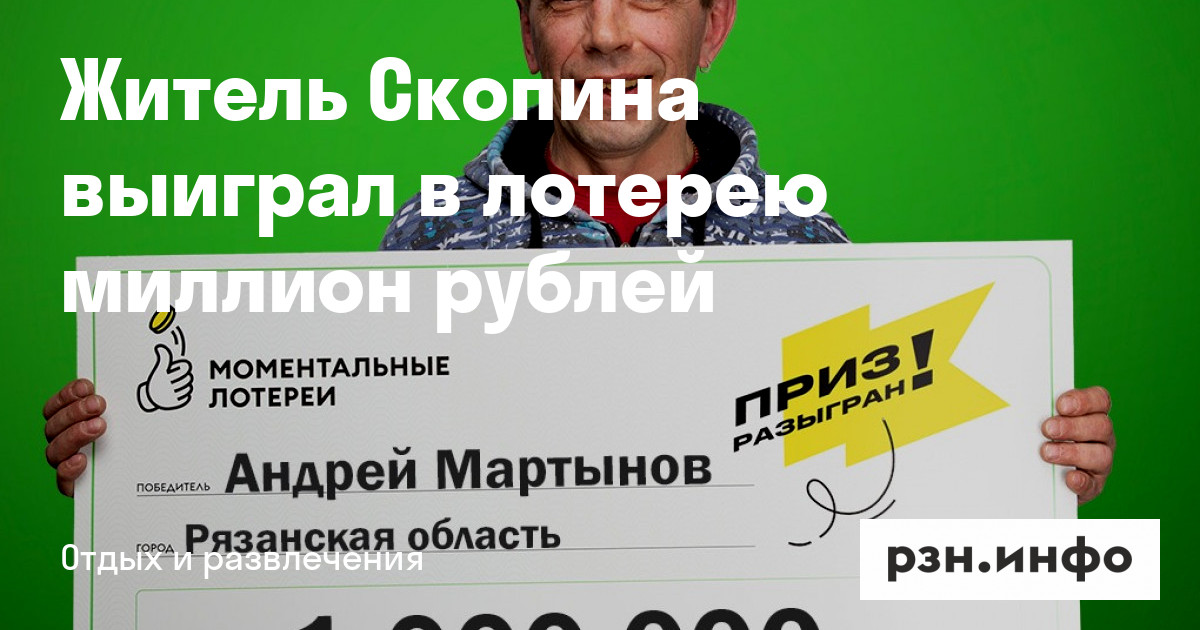 Уроженец Скопина Андрей Мартынов выиграл в лотерею миллион рублей. Об этом в пятницу, 24 июня, сообщила пресс-служба «Столото».