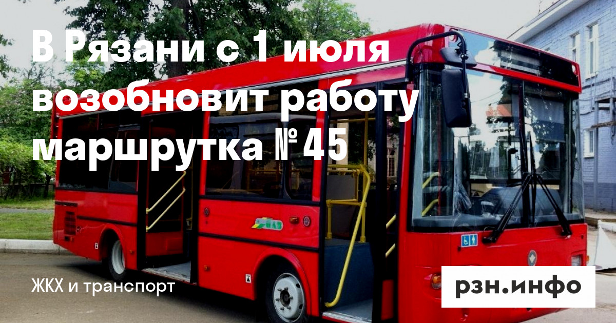 В Рязани с 1 июля возобновит работу маршрутка № 45. Об этом на сайте мэрии.