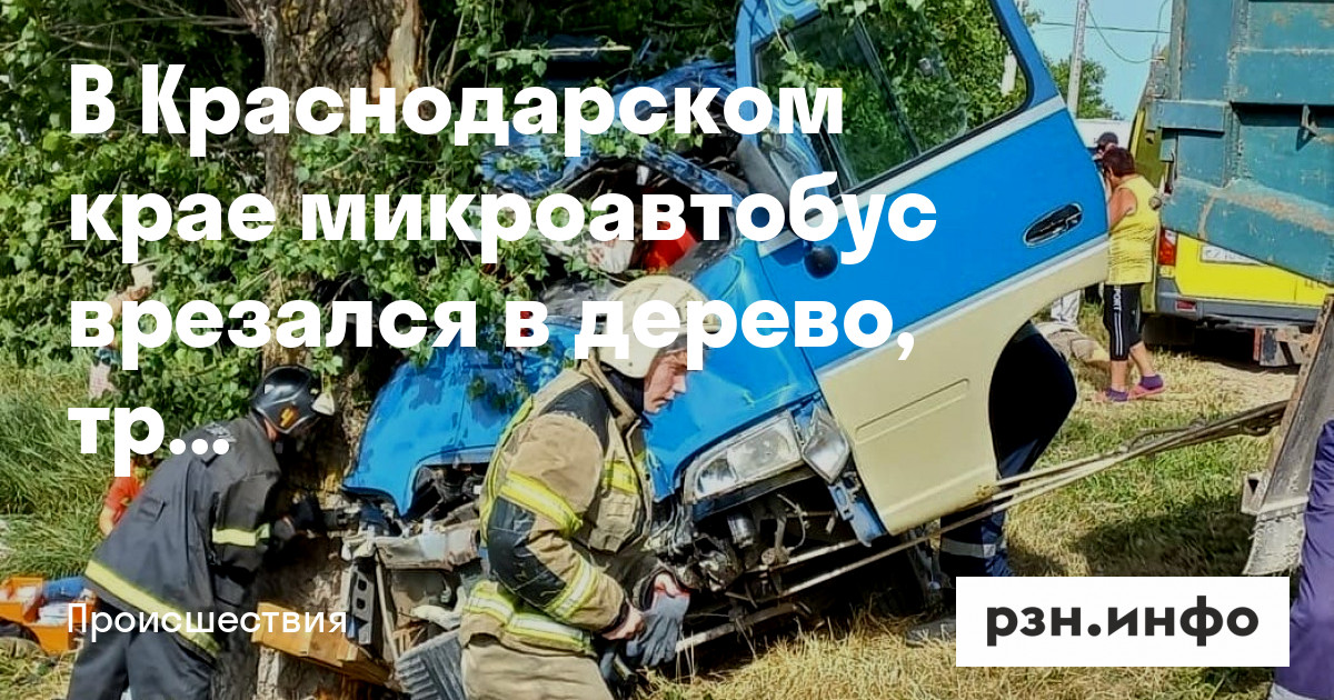 В Краснодарском крае микроавтобус врезался в дерево, три человека погибли