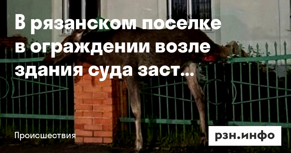 В рязанском поселке в ограждении возле здания суда застрял лось