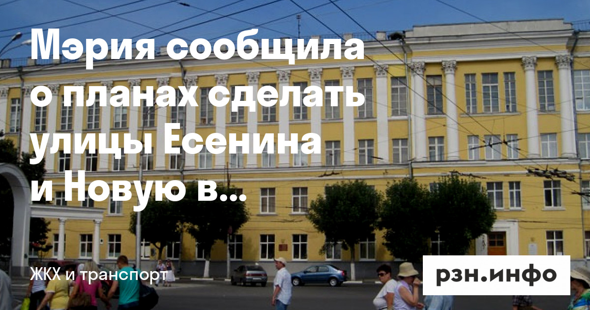 Мэрия сообщила о планах сделать улицы Есенина и Новую в Рязани двухсторонними для водителей. Об этом сообщили замначальника управления благоустройства города Дмитрий Наумов в эфире областного радио.