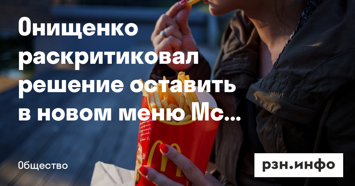 Бывший главный санитарный врач России Геннадий Онищенко возмутился решением российского владельца оставить в обновленном McDonald’s «джанк-фуд» (дословный перевод с английского «мусорная еда»).