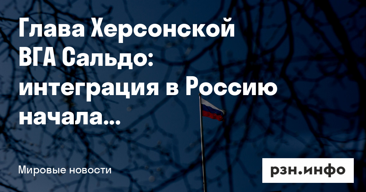 Интеграция Херсонской области в Россию началась и будет интенсивно продолжаться. Об этом в четверг, 9 июня, сообщил глава военно-гражданской администрации региона Владимир Сальдо, РИА Новости.