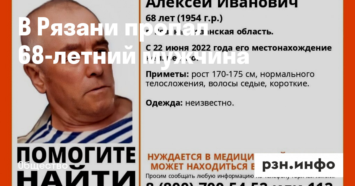 В Рязани пропал 68-летний Алексей Лазарев. Об этом сообщила группа поисково-спасательного отряда «».