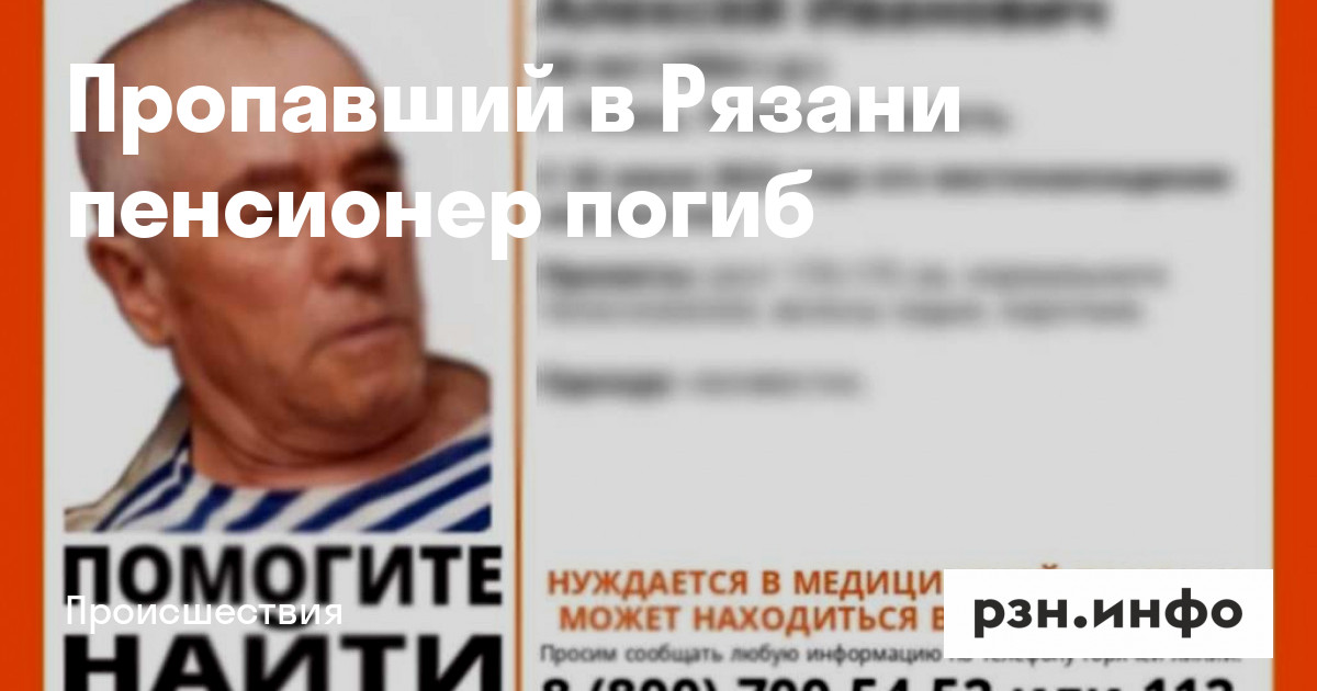 68-летний Алексей Лазарев, пропавший в Рязани, погиб. Об этом пишет «МК в Рязани».