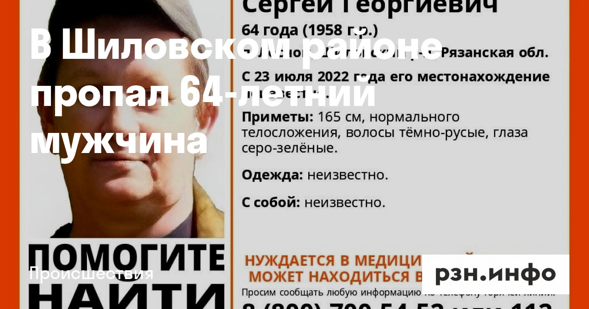 В поселке Лесном Шиловского района пропал мужчина 1958 года рождения. Сергей Георгиевич Алпатов разыскивается с 23 июля, сообщают волонтеры «ЛизаАлерт».