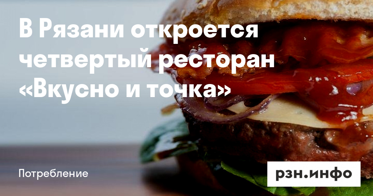 В среду, 27 июля, в Рязани откроется еще один ресторан сети «Вкусно — и точка». Об этом сообщается в группе мероприятия «ВКонтакте».