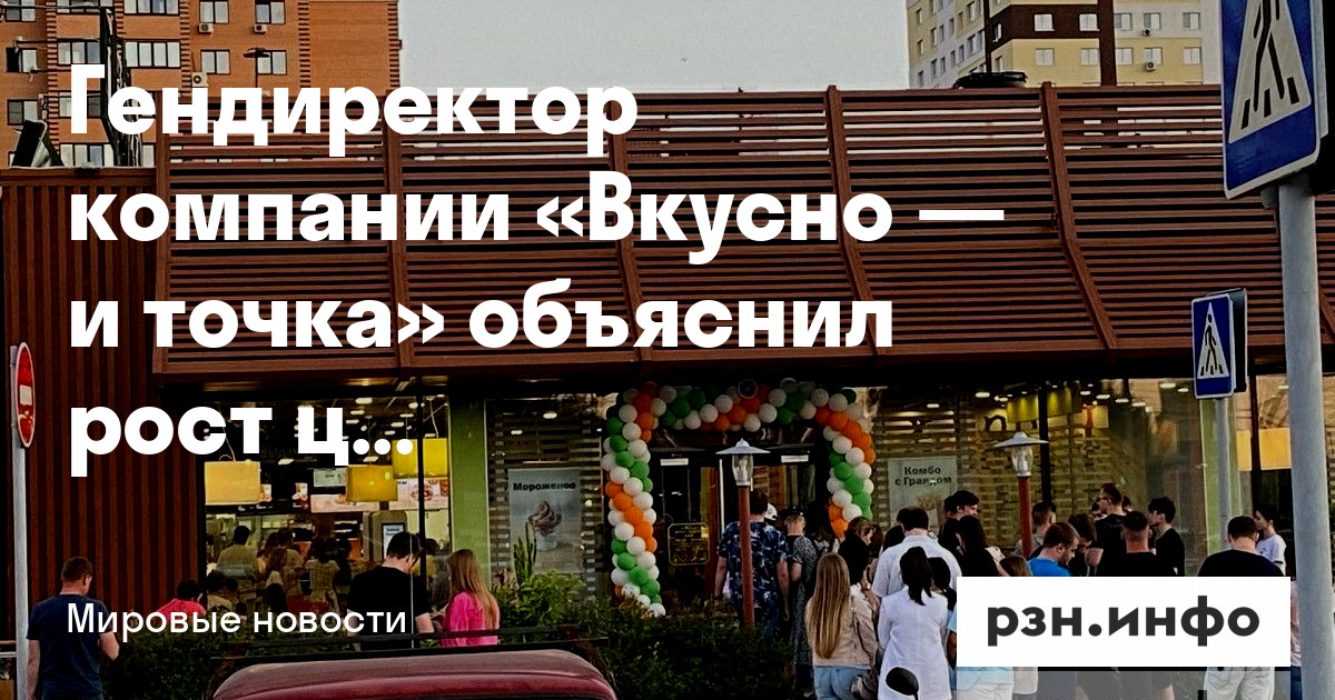 Гендиректор компании «Вкусно — и точка» Олег Пароев объяснил рост цен на блюда в меню в сети ресторанов. Об этом он рассказал в интервью .