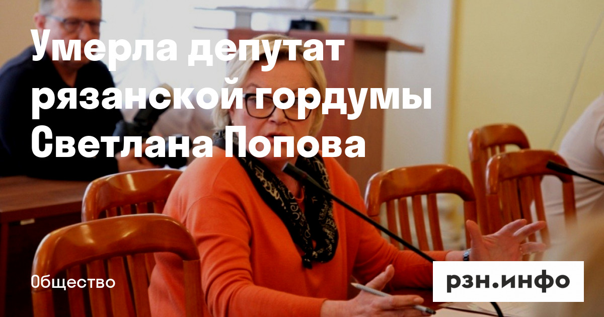 Умерла депутат рязанской гордумы Светлана Попова. Об этом сообщил «».