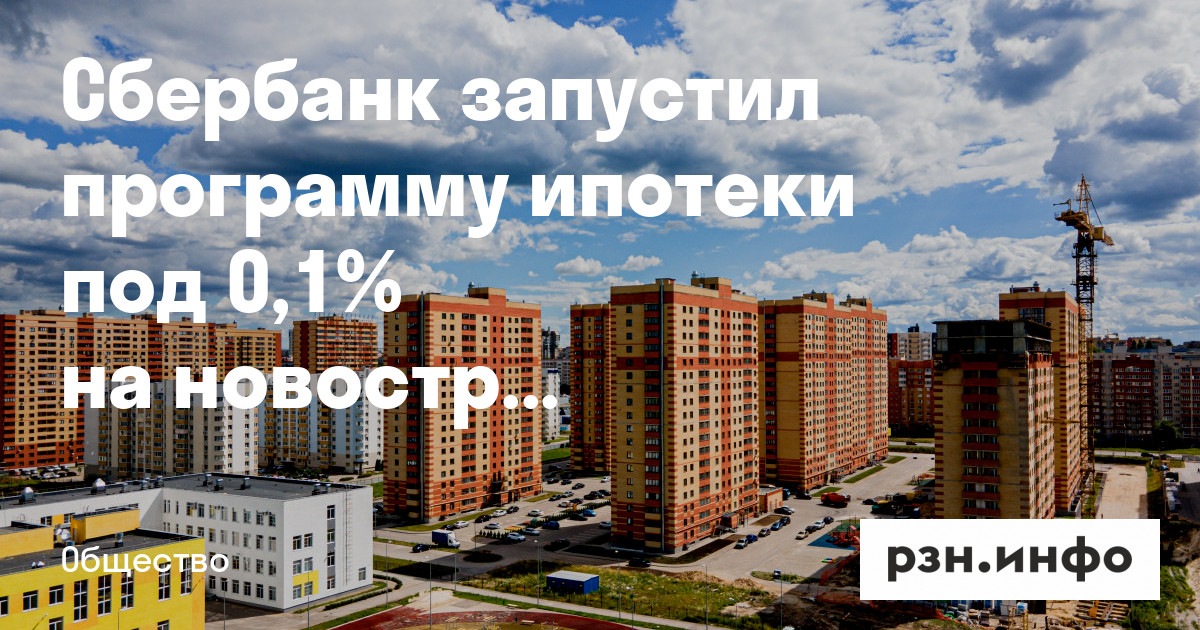 Сбербанк запустил программу ипотеки под 0,1% на новостройки от рязанского застройщика