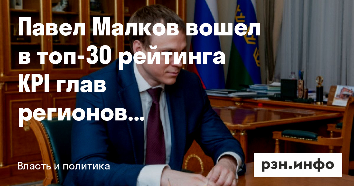 Врио губернатора Рязанской области Павел Малков стал 30-м среди глав регионов по версии информационного-рейтингового агентства The World Inform и канала «ПУЛ Telegram». Его KPI месяца — 34%.