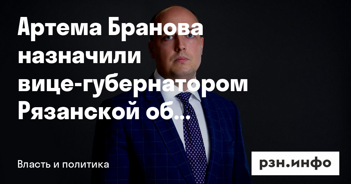 Артема Бранова назначили вице-губернатором Рязанской области. Об этом РЗН. инфо сообщил собственный источник.