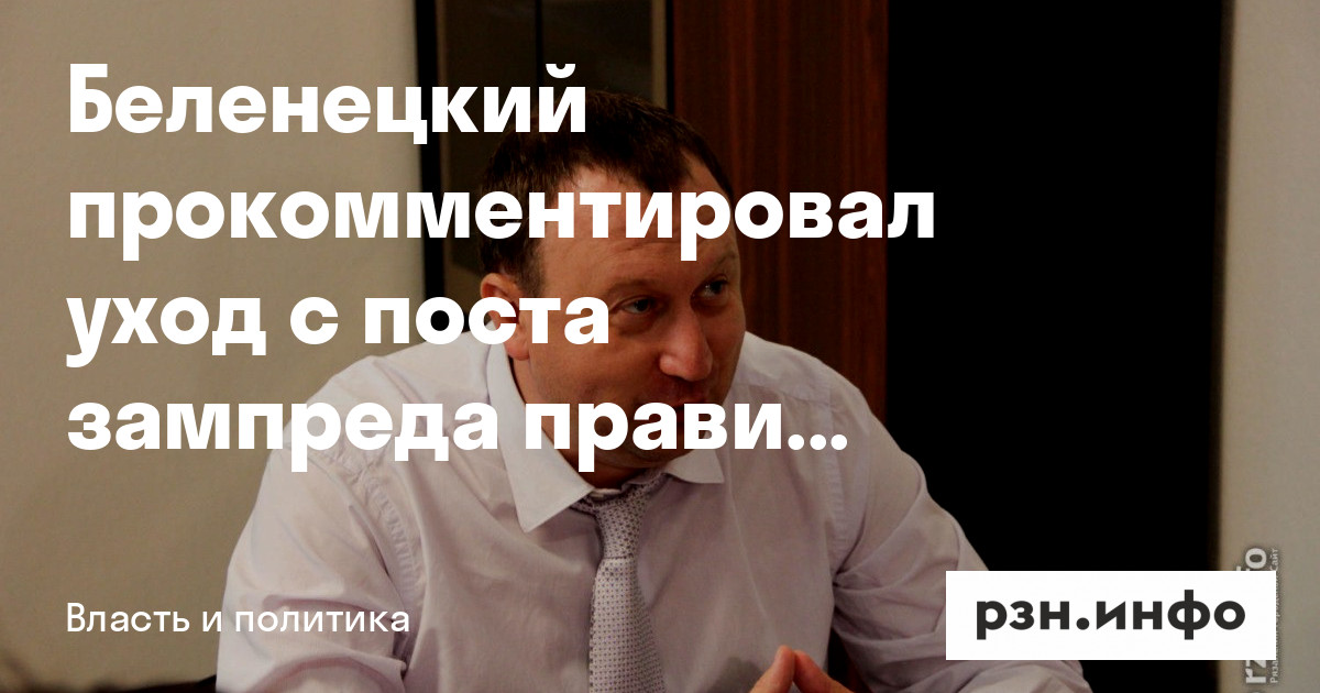 Бывший зампред правительства Рязанской области Евгений Беленецкий прокомментировал РЗН. инфо уход с поста.