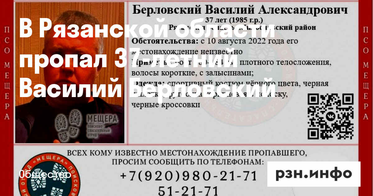 В Рязанской области пропал 37-летний Василий Берловский. Об этом сообщили волонтеры поисково-спасательного отряда «Мещера».