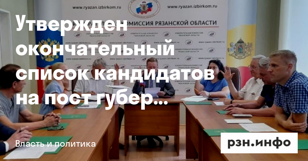 Утвержден окончательный список кандидатов на пост губернатора Рязанской области. Об этом регионального избирательной комиссии в пятницу, 5 августа.