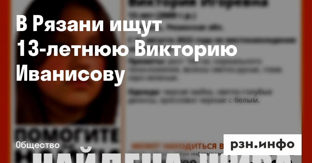 В Рязани ищут 13-летнюю Викторию Иванисову. Об этом сообщил поисково-спасательный отряд «».