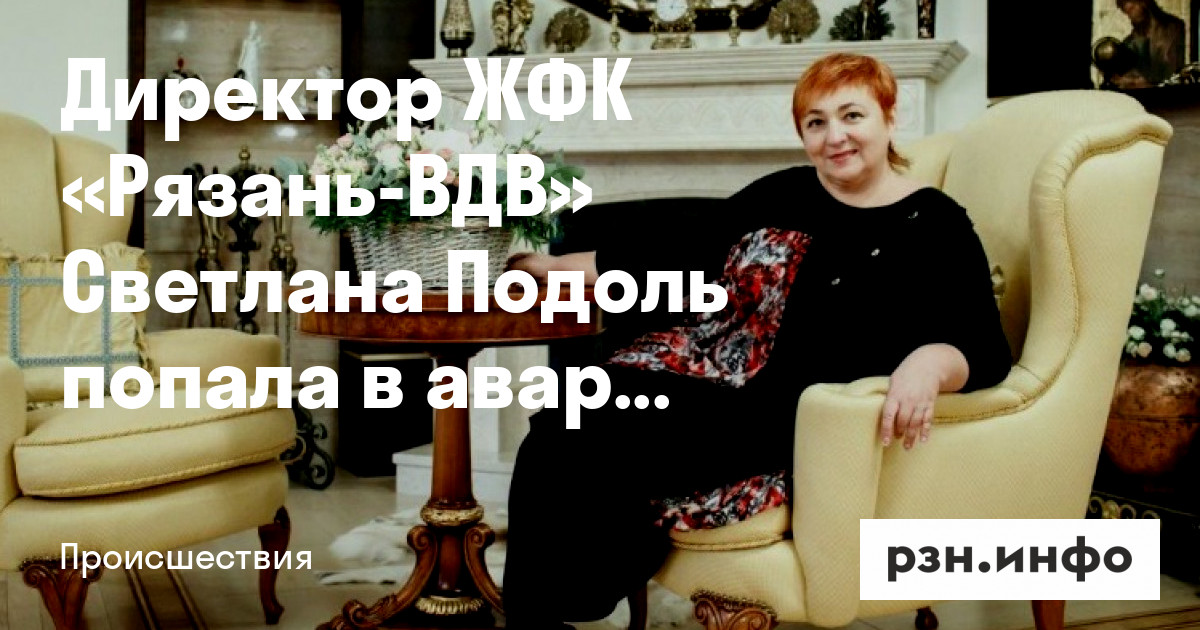 Директор ЖФК «Рязань-ВДВ» Светлана Подоль попала в аварию на Куйбышевском шоссе. Об этом во вторник, 13 сентября, сообщили в клубе.