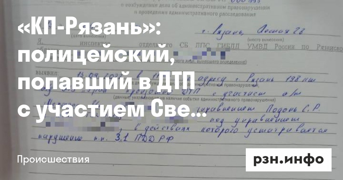 В действиях водителя полицейской «ГАЗели», попавшей в ДТП с участием Mercedes директора ЖФК «Рязань-ВДВ» Светланы Подоль, усмотрели нарушение ПДД. Документ оказался в распоряжении РЗН. инфо.