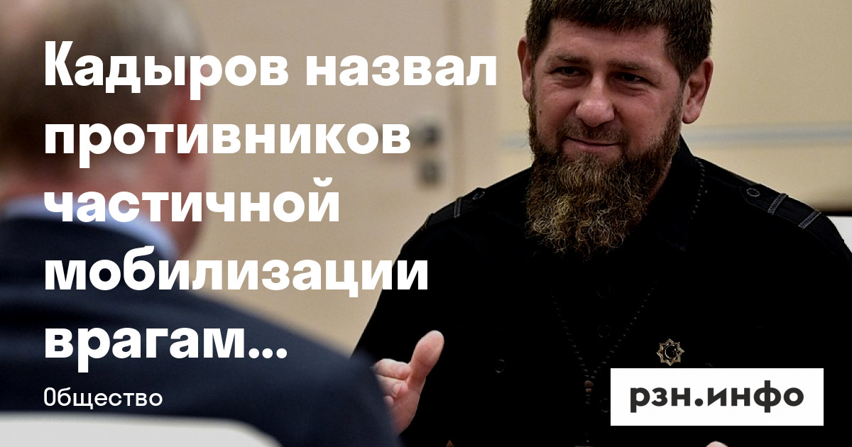 Глава Чечни Рамзан Кадыров назвал противников частичной мобилизации в России врагами народа. Об этом он сказал в видео, опубликованном в Telegram-канале.
