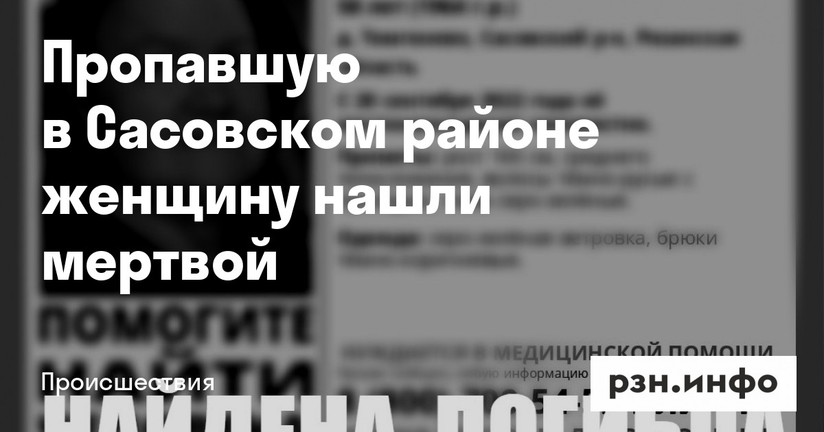 Пропавшая в Сасовском районе 58-летняя женщина была найдена мертвой. Об этом в субботу, 24 сентября, сообщили волонтеры поисково-спасательного отряда