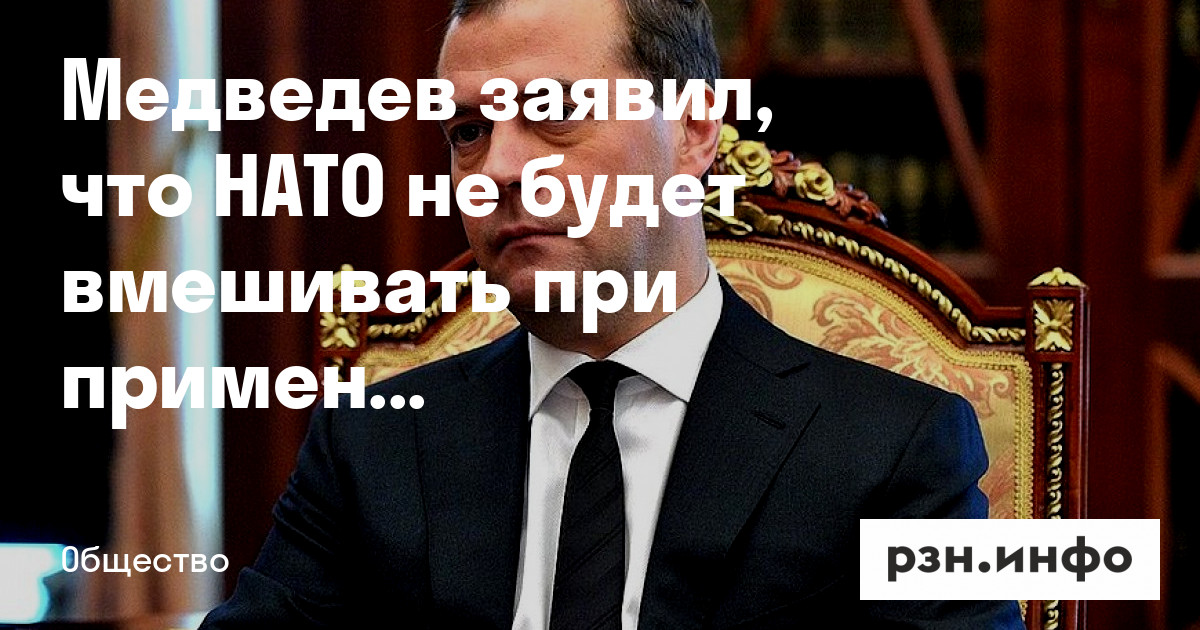 Зампред Совбеза Дмитрий Медведев сообщил, что НАТО не будет вмешиваться в ситуацию, если Россия применит ядерное оружия. Об этом он сообщил в .