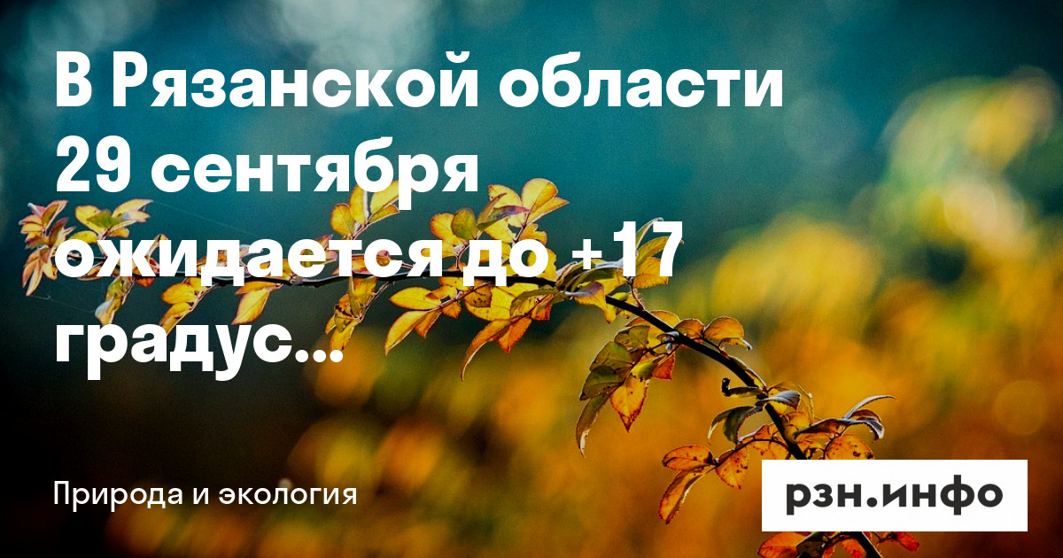 В Рязанской области в четверг, 29 сентября, ожидается до +17 градусов. Об этом сообщило региональное .