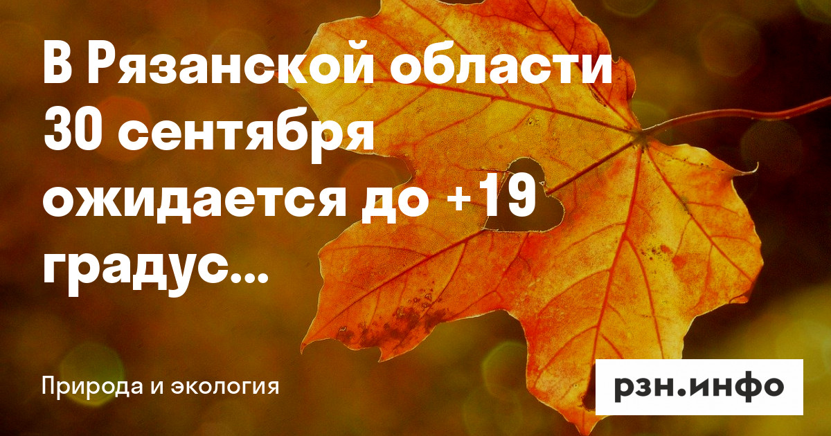 В Рязанской области в пятницу, 30 сентября, ожидается до +19 градусов. Прогноз погоды опубликовали на сайте .