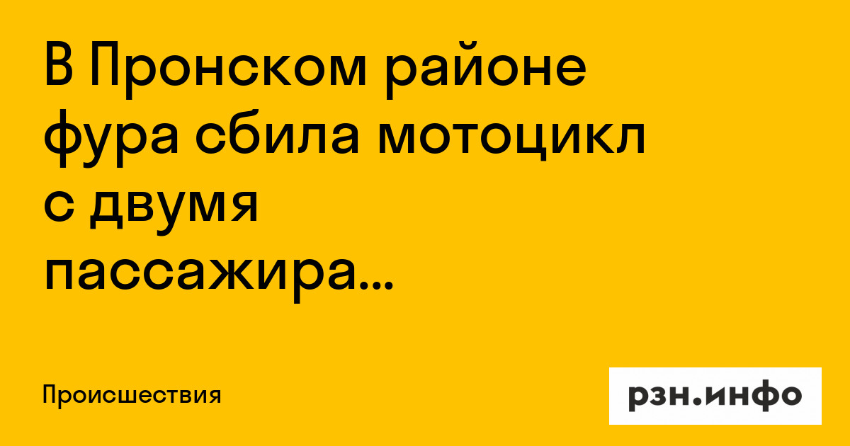 В Пронском районе фура сбила мотоцикл с двумя пассажирами. Об этом сообщили в региональном УМВД.