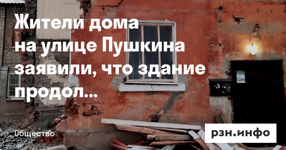 Жители частично обрушившегося дома на улице Пушкина № 47 сообщили журналисту РЗН. инфо, что здание продолжает разрушаться.